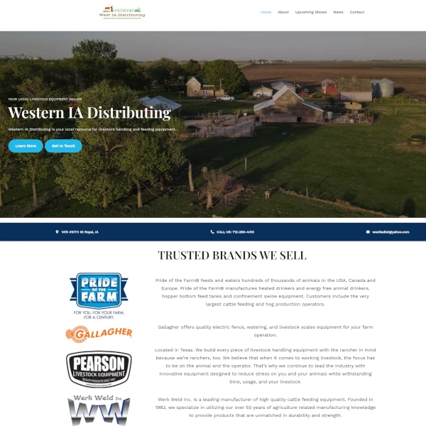 West IA Distributing is a livestock equipment dealer in Royal, IA. This project utilizes a great looking design with aerial images shot by John French